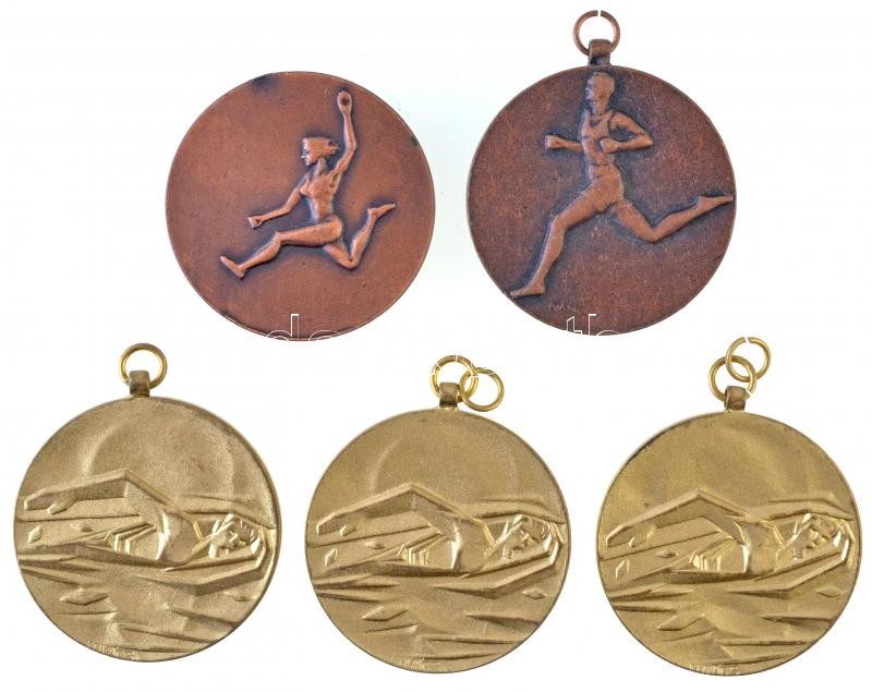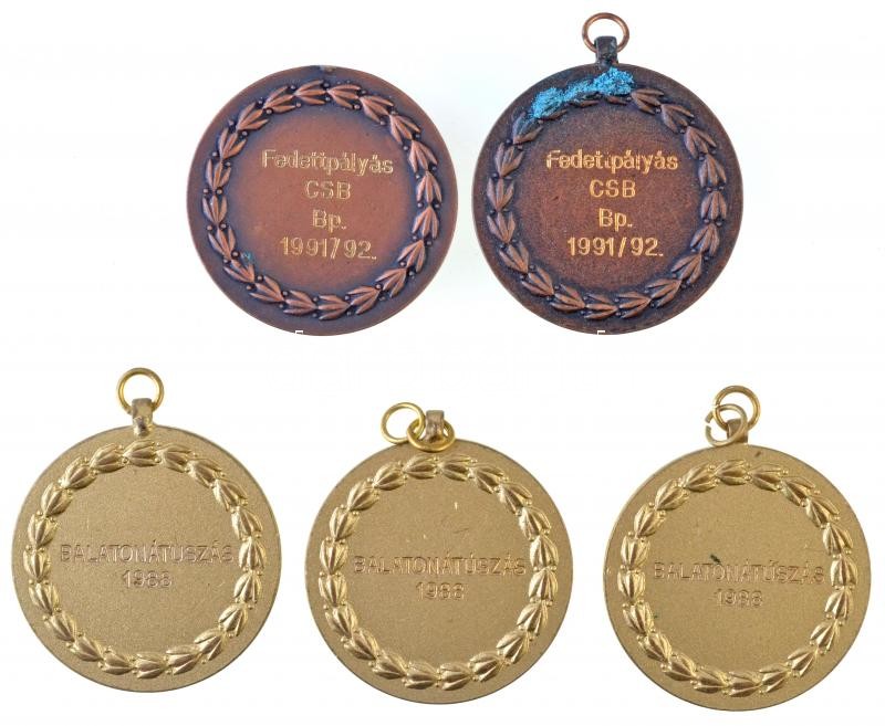 Beschreibung: 5db-os modern sportérem tétel, közte 1988. "Balatonátúszás" aranyozott fém sportérem füllel. Szign.: KOVÁCS (3x) T:2 ph., szennyeződés