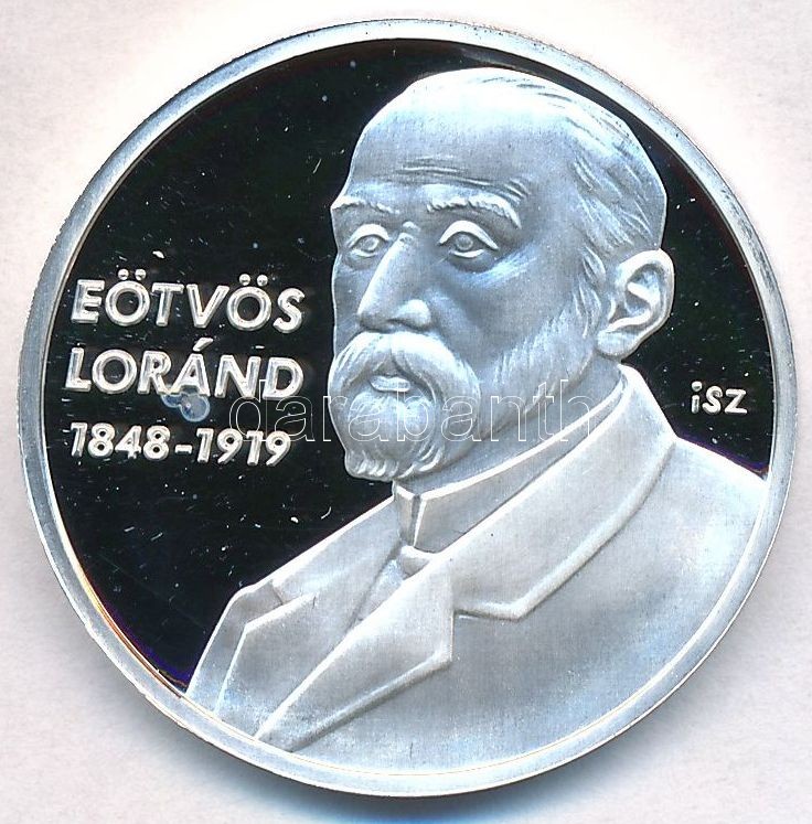 ifj. Szlávics László (1959-) 2011. "Nagy Magyarok / Eötvös Lóránd 1848-1919" jelzett Ag emlékérem tanúsítvánnyal (10g/0.999/30mm) T:PP kis fo.