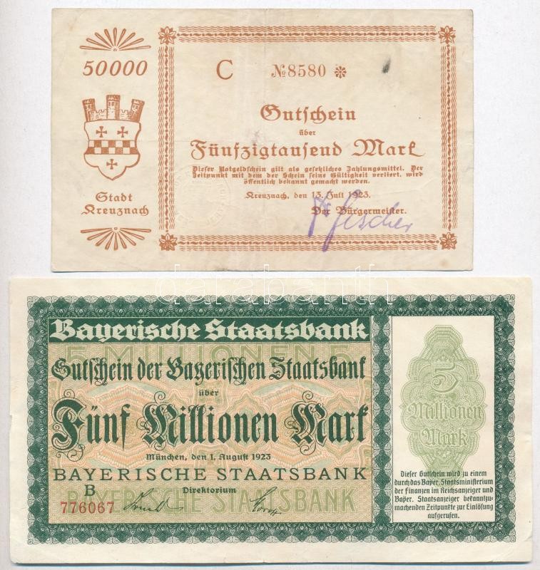 Német Birodalom / Weimari Köztársaság 1923. 5db-os vegyes szükségpénz tétel T:III,III- szakadás