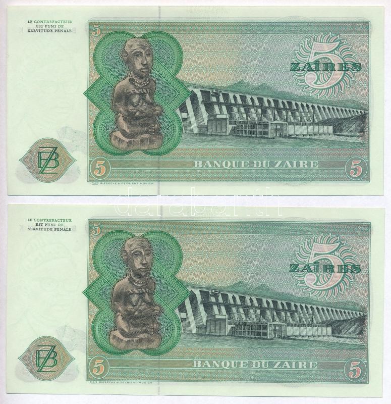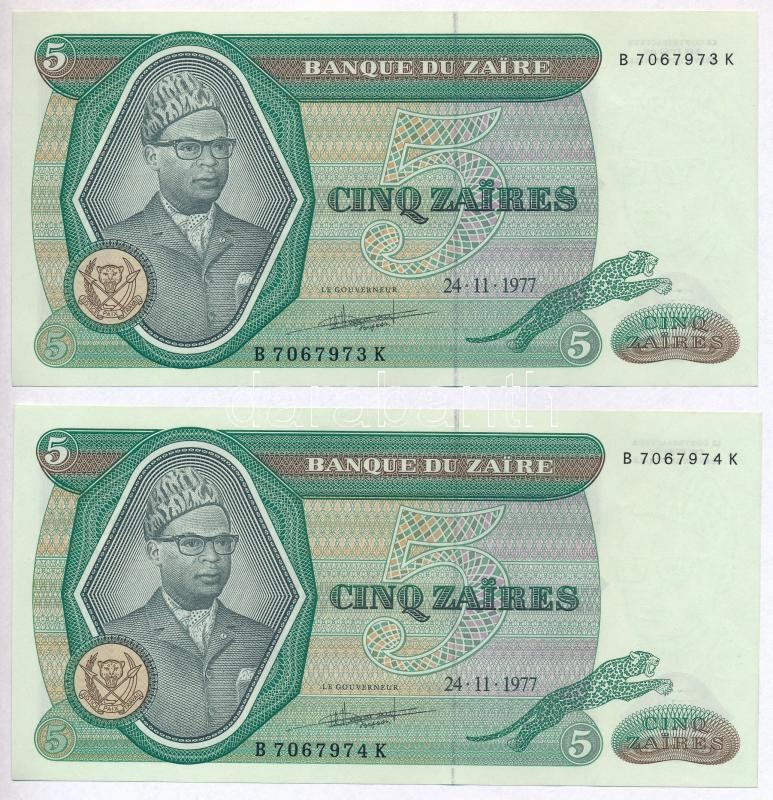 Zaire 1977. 5 Zaires (2x) sequ... https://www.darabanth.com/de/315-Fernauktion/315.0/Numismatik/Weltweit-Banknoten~2000012/Zaire-1977-5Z-2x-sorszamkovetok-TI--Zaire-1977-5-Zaires-2x-sequential-serials-CUNC~II1728023