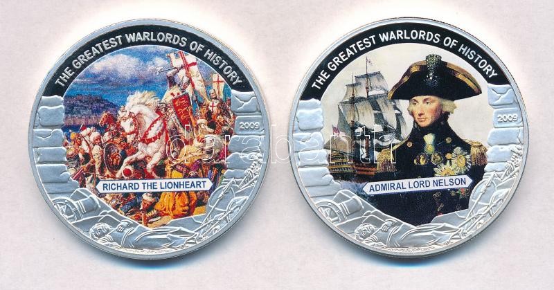 Liberia 2009. 5 Dollars Cu (2xdiff) "The Greatest Warlords of History - Richard the Lionheart, Admiral Lord Nelson" multicolor, with certificate C:PP