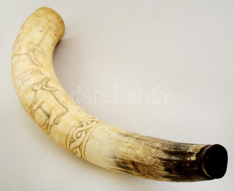 Nagyméretű szarvkürt, naiv-népi motívumos díszítéssel, kis lepattanáso... https://www.darabanth.com/de/316-Fernauktion/316.0/Andere-Sammelgebiete/Antik~4/Nagymeretu-szarvkurt-naiv-nepi-motivumos-diszitessel-kis-lepattanasokkal-h-60-cm~II1732375