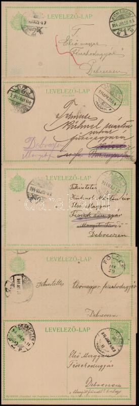 Beschreibung: 1914 5 db az Első Magyar Fészekodúgyár részére küldött levelezőlap hivatalos ügyekben