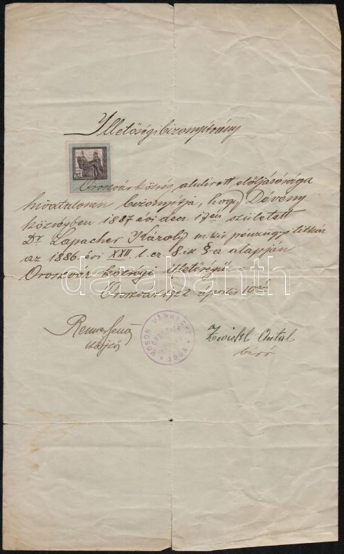1922 Illetőségi bizonyítvány oroszvári lakos részére, okmánybélyeggel https://www.darabanth.com/de/316-Fernauktion/316.0/Andere-Sammelgebiete/Dokument~16/1922-Illetosegi-bizonyitvany-oroszvari-lakos-reszere-okmanybelyeggel~II1736964