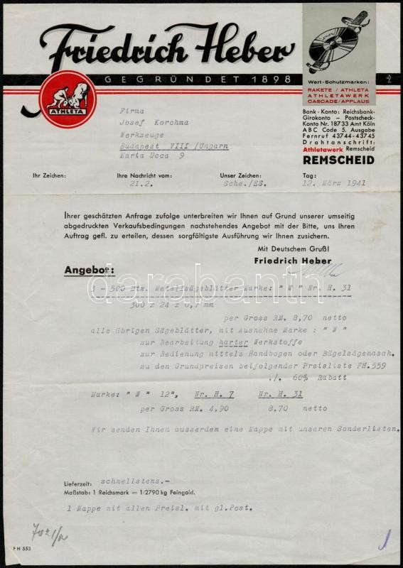 1941 Friedrich Heber szerszámgyárának fejléces levélpapírjára írt aján... https://www.darabanth.com/de/316-Fernauktion/316.0/Andere-Sammelgebiete/Dokument~16/1941-Friedrich-Heber-szerszamgyaranak-fejleces-levelpapirjara-irt-ajanlat~II1736399