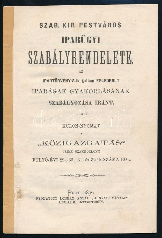1872 Pest, Szabad királyi Pestváros iparügyi szabályredelete, 16p https://www.darabanth.com/de/316-Fernauktion/316.0/Andere-Sammelgebiete/Drucksachen~27/1872-Pest-Szabad-kiralyi-Pestvaros-iparugyi-szabalyredelete-16p~II1735869