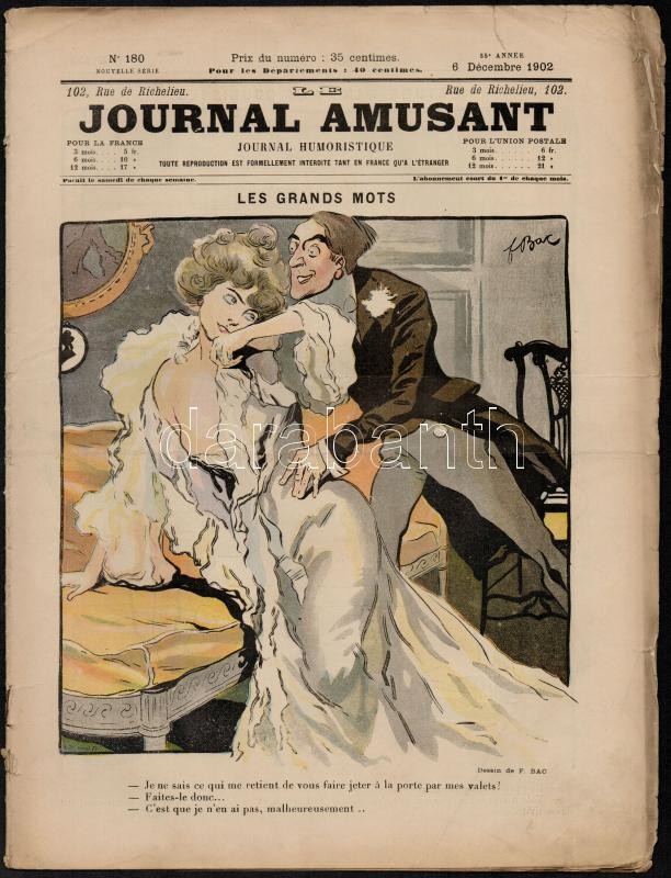 1902 Journal Amusant, journal humoristique Nr. 180 - francia nyelvű vi... https://www.darabanth.com/de/316-Fernauktion/316.0/Andere-Sammelgebiete/Drucksachen~27/1902-Journal-Amusant-journal-humoristique-Nr-180--francia-nyelvu-vicclap-illusztraciokkal-16~II1737179