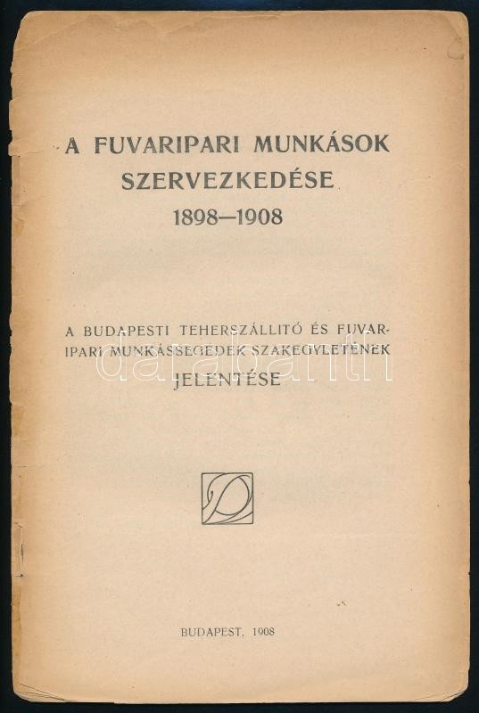 1908 Bp., A fuvaripari munkások szervezkedése 1898-1908, A Budapesti T... https://www.darabanth.com/de/316-Fernauktion/316.0/Andere-Sammelgebiete/Drucksachen~27/1908-Bp-A-fuvaripari-munkasok-szervezkedese-1898-1908-A-Budapesti-Teherszallito-es-fuvaripa~II1736856