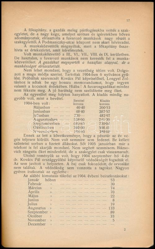 Beschreibung: 1908 Bp., A fuvaripari munkások szervezkedése 1898-1908, A Budapesti Teherszállító és fuvaripari Munkássegédek Szakegyletének jelentése, 45p
