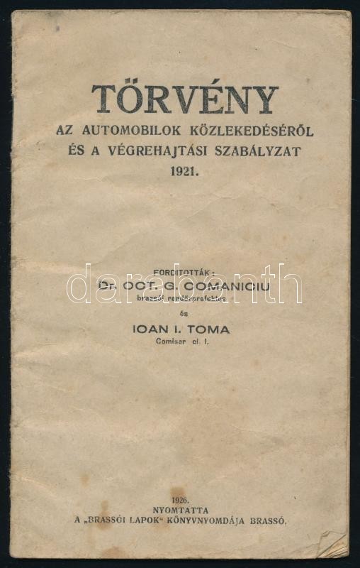 1926 Törvény az automobilok közlekedéséről és a végrehajtási szabályza... https://www.darabanth.com/de/316-Fernauktion/316.0/Andere-Sammelgebiete/Drucksachen~27/1926-Torveny-az-automobilok-kozlekedeserol-es-a-vegrehajtasi-szabalyzat-1921-Brasso-Bra~II1720104