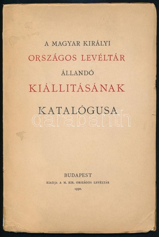 1930 Bp., A Magyar Királyi Országos Levéltár állandó kiállításának kat... https://www.darabanth.com/de/316-Fernauktion/316.0/Andere-Sammelgebiete/Drucksachen~27/1930-Bp-A-Magyar-Kiralyi-Orszagos-Leveltar-allando-kiallitasanak-katalogusa-kiadja-a-M~II1736859