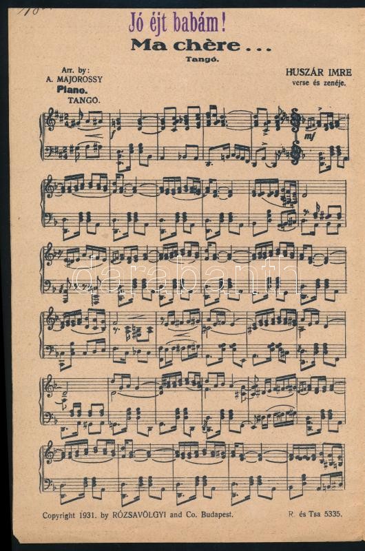 1931 Huszár Imre "Ma chere!" c. szerzeményének kottája, Bp., Rózsavölg... https://www.darabanth.com/de/316-Fernauktion/316.0/Andere-Sammelgebiete/Drucksachen~27/1931-Huszar-Imre-Ma-chere-c-szerzemenyenek-kottaja-Bp-Rozsavolgyi-es-Tarsa-Byssz-Ro~II1723472