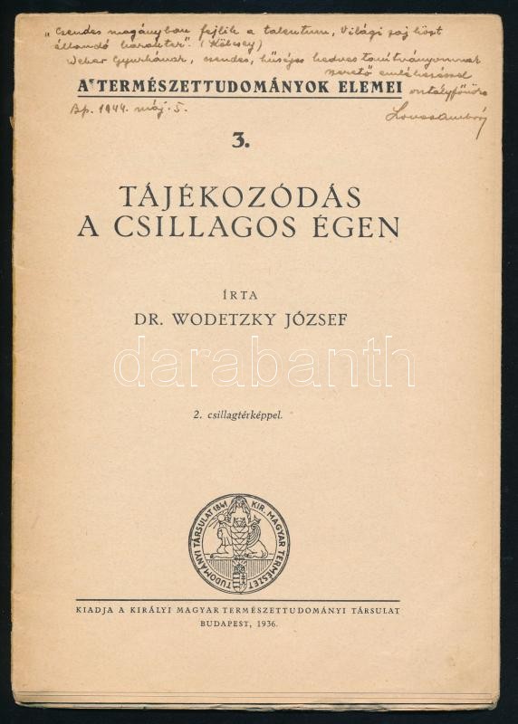 1936 Dr. Wodetzky József: Tájékozódás a csillagos égen. A Természettud... https://www.darabanth.com/de/316-Fernauktion/316.0/Andere-Sammelgebiete/Drucksachen~27/1936-Dr-Wodetzky-Jozsef-Tajekozodas-a-csillagos-egen-A-Termeszettudomanyok-Elemei-sorozat~II1736827