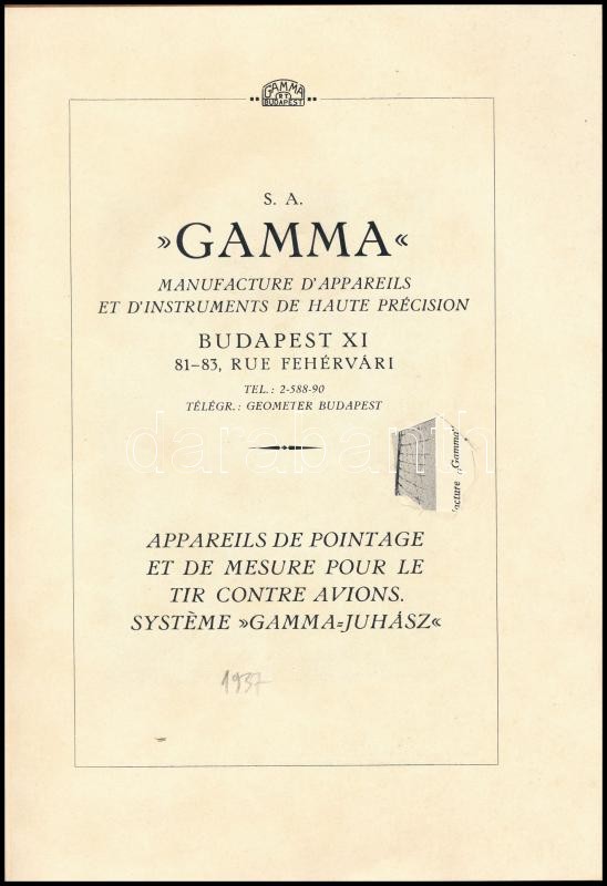 1937 A Gamma-Juhász-féle lőelemképző képes ismertetője, francia nyelve... https://www.darabanth.com/de/316-Fernauktion/316.0/Andere-Sammelgebiete/Drucksachen~27/1937-A-Gamma-Juhasz-fele-loelemkepzo-kepes-ismertetoje-francia-nyelven-kivagassal-23p~II1736892