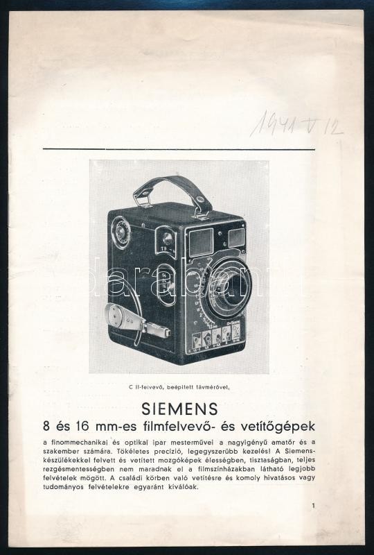 1941 Siemens 8 és 16 mm-es filmfelvevő- és vetítőgépek prospektusa, 7p https://www.darabanth.com/de/316-Fernauktion/316.0/Andere-Sammelgebiete/Drucksachen~27/1941-Siemens-8-es-16-mm-es-filmfelvevo-es-vetitogepek-prospektusa-7p~II1736829