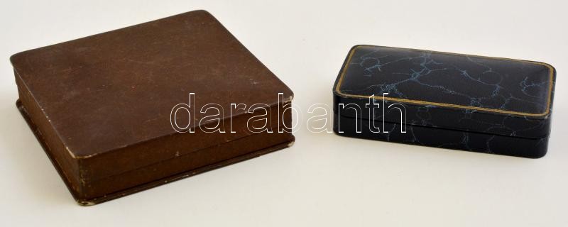 Beschreibung: Régi ékszeres és órás dobozka, Kleinberger Ékszerészek és Herpy Arnold óraműves feliratokkal, 10x9,5x2,5 cm és 8,5x4,5x2 cm