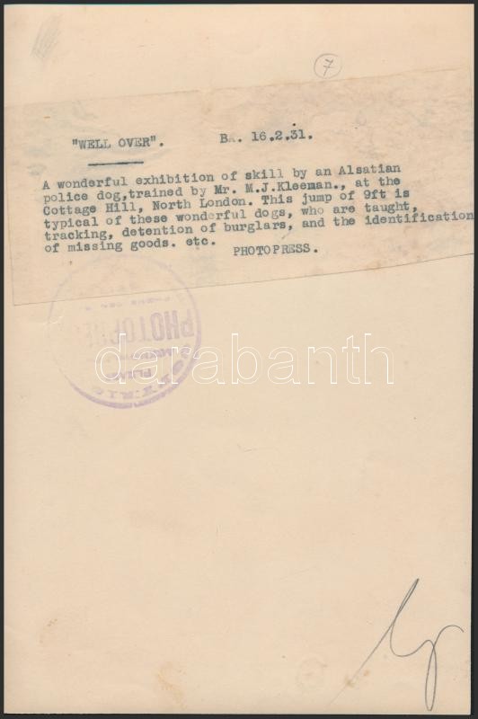1931 Rendőrkutya kiképzése, angolul feliratozott vintage sajtófotó, 2... https://www.darabanth.com/de/316-Fernauktion/316.0/Andere-Sammelgebiete/Foto~19/1931-Rendorkutya-kikepzese-angolul-feliratozott-vintage-sajtofoto-23x15-cm~II1731699