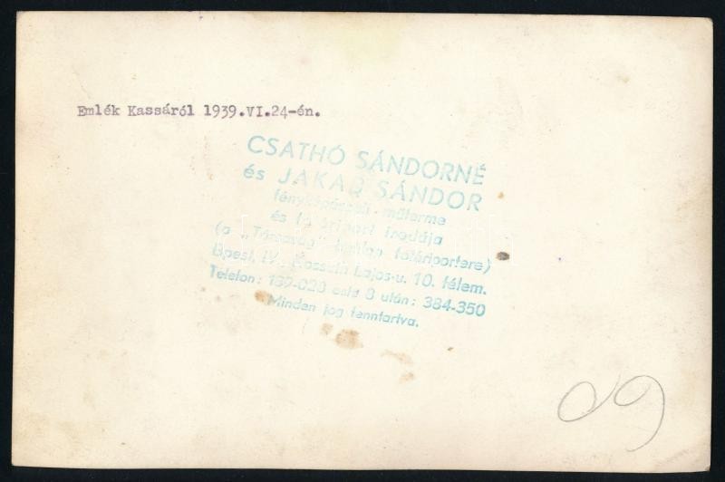 1939 A telefongyári dalkör Kassán, fotó Csathó Sándorné és Jakab Sándo... https://www.darabanth.com/de/316-Fernauktion/316.0/Andere-Sammelgebiete/Foto~19/1939-A-telefongyari-dalkor-Kassan-foto-Csatho-Sandorne-es-Jakab-Sandor-budapesti-muterme~II1738631
