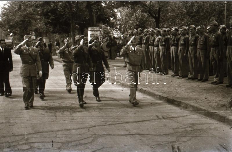 1948 Budapest, katonai ünnepség a budai várban, díszszázad, főtisztek, 24 db vintage negatív Rózsa György (?-?) budapesti fotóriporter hagyatékából, 24x36 mm