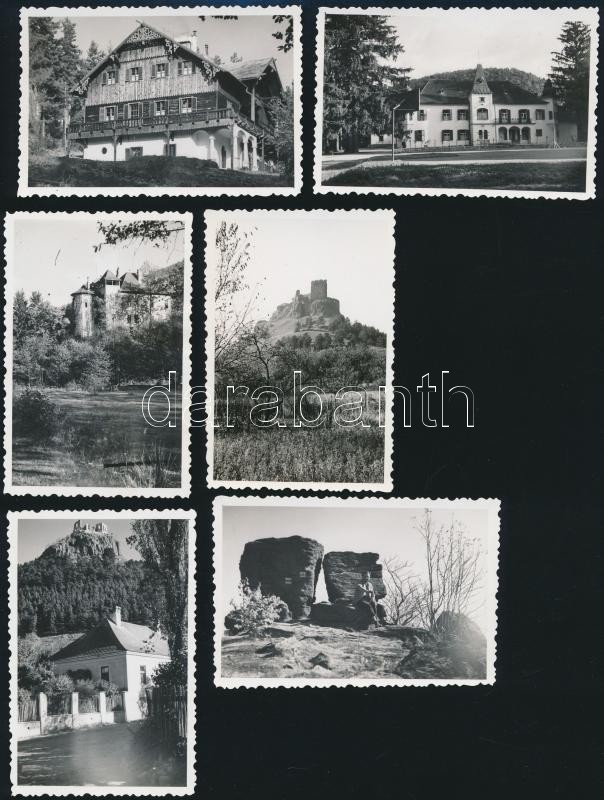Beschreibung: Kirándulás a Zempléni-hegységben (Boldogkő vára, Füzér vára, újhutai kastély, svájci ház Telkibányán, Pengő-kő, kőkapui kastély), 6 db fotó, 9x6 cm