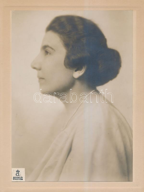 cca 1930 Angelo (1894-1974): Női portré profilból, matricával jelzett ... https://www.darabanth.com/de/316-Fernauktion/316.0/Andere-Sammelgebiete/Foto~19/cca-1930-Angelo-1894-1974-Noi-portre-profilbol-matricaval-jelzett-mutermi-vintage-foto-23~II1057686