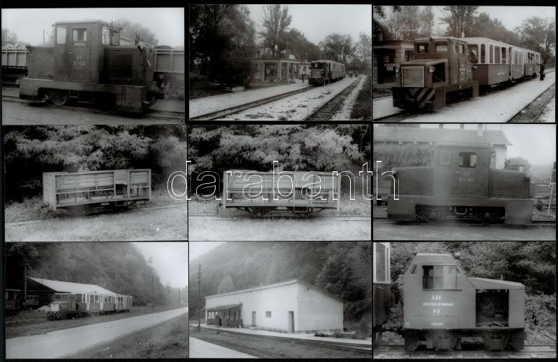 Beschreibung: cca 1960-1970 Linzbauer Tamás: A börzsönyi úttörővasút, 12 db fotó, hátuljukon feliratozva, pecséttel jelezve, 9×14 cm
