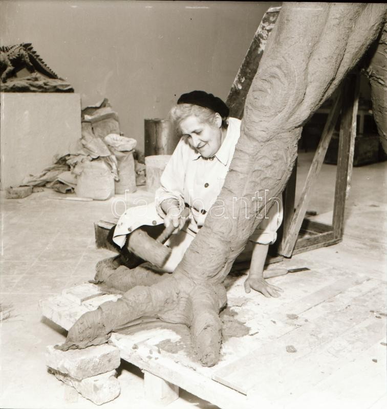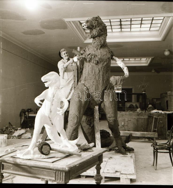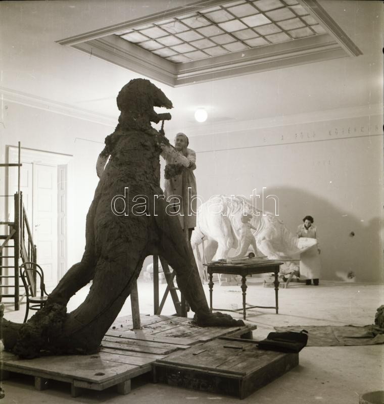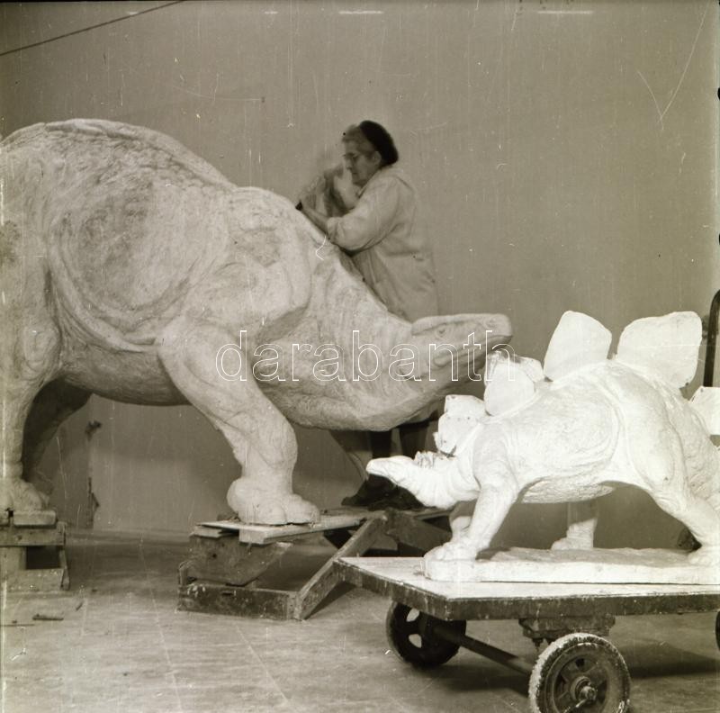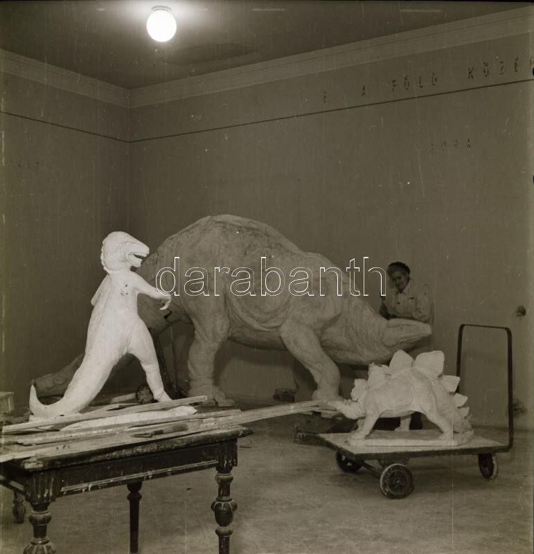 cca 1960 Magyar Nemzeti Múzeum őslénytani kiállításához készülő dinó szobrok, 5 db vintage negatív Kotnyek Antal (1921-1990) budapesti fotóriporter hagyatékából, 6x6 cm