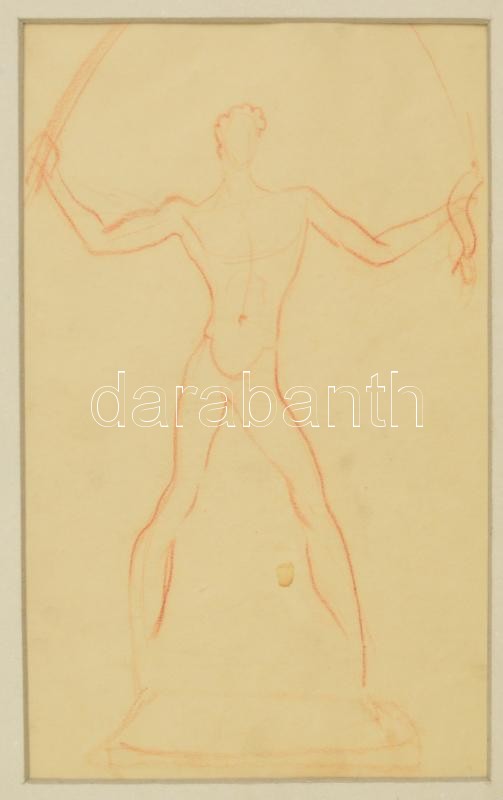 Beschreibung: Erdey Dezső (1902-1957): Halász, vázlatrajz, kréta, papír, hátulján jelzett, paszpartuban, 27×17 cm