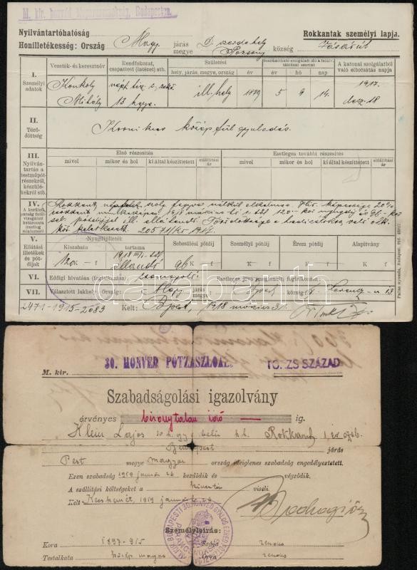1918-1919 Katonai szabadságolási igazolvány és rokkant személyi lap, 2... https://www.darabanth.com/de/316-Fernauktion/316.0/Andere-Sammelgebiete/Militaria~25/1918-1919-Katonai-szabadsagolasi-igazolvany-es-rokkant-szemelyi-lap-2-db~II1736035