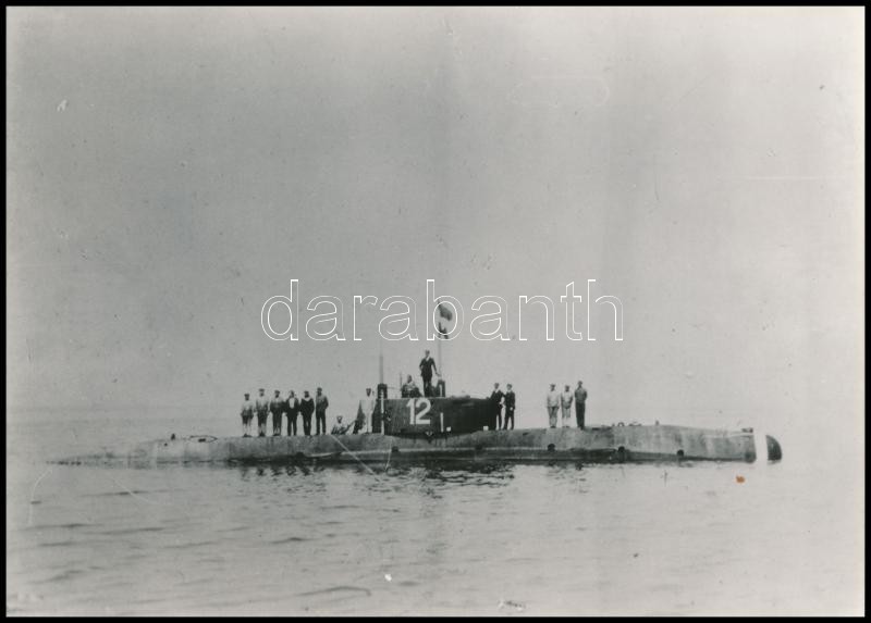 Az U12-es, 1915. augusztus 11-én elsüllyedt cs. és kir. tengeralattjáróról készített fotó, eredeti negatívról a 1980-as években előhívott másolat, 13x18 cm