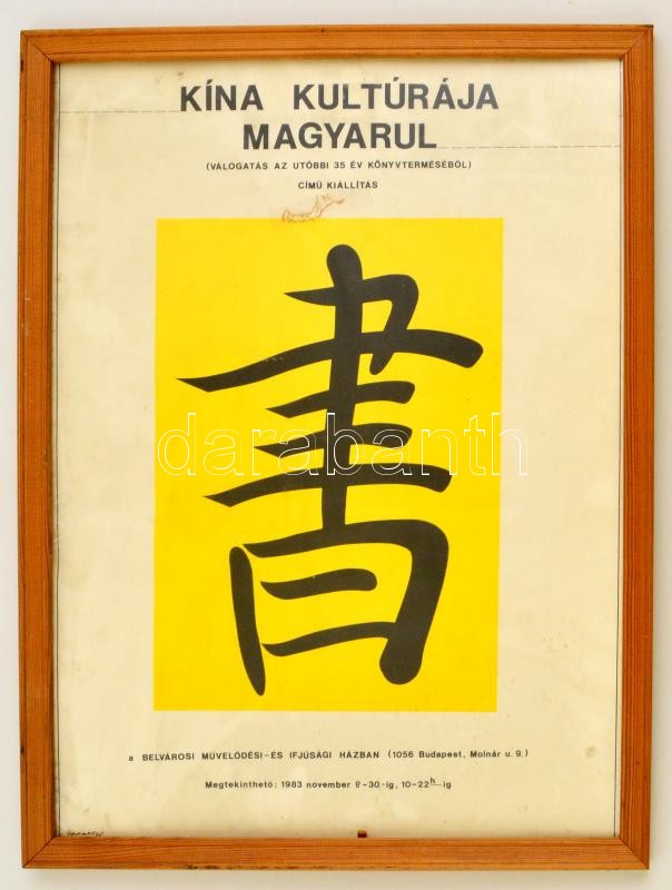 1983 Kína kultúrája magyarul, Belvárosi Művelődési- és Ifjúsági Házban... https://www.darabanth.com/de/316-Fernauktion/316.0/Andere-Sammelgebiete/Poster~28/1983-Kina-kulturaja-magyarul-Belvarosi-Muvelodesi-es-Ifjusagi-Hazban-kiallitas-plak~II1732337