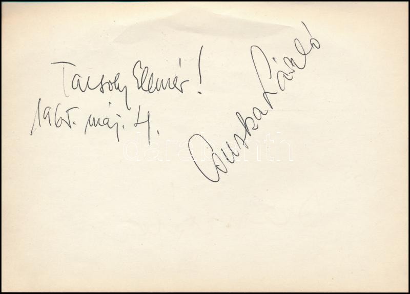 Beschreibung: 1965 Váradi Hédi színésznő és Csurka László színész aláírásai papírlapon