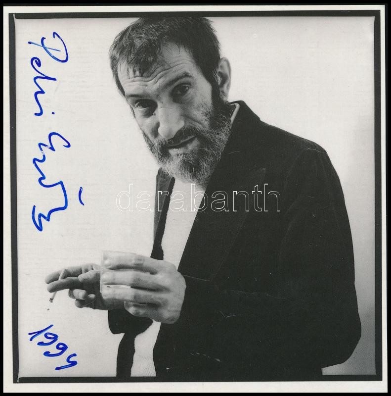 Beschreibung: Petri György (1943-2000) költő aláírása az őt ábrázoló fotólapon 15x15 cm