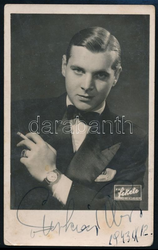 Beschreibung: Puskás Tibor színész aláírása őt ábrázoló fotólapon