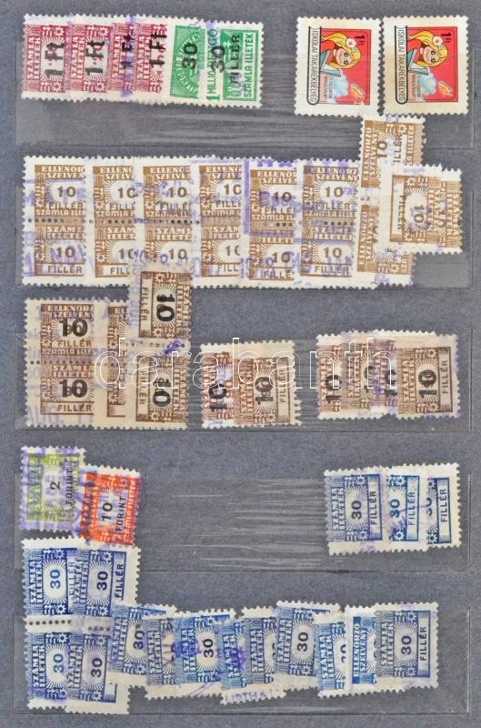 Beschreibung: Városi okmánybélyegek, számlailleték bélyegek 6 lapos közepes berakóban, hozzá kenyércimkék, belépőjegyek