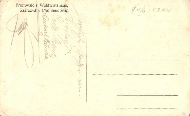 Szárazvám, Müllendorf; Frommwald's Waldwirtshaus / restaurant / Vendég... https://www.darabanth.com/de/316-Fernauktion/316.0/Ansichtskarten/Burgenland~1500011/Szarazvam-Mullendorf-Frommwalds-Waldwirtshaus-restaurant-Vendeglo-photo-EK~II1735757