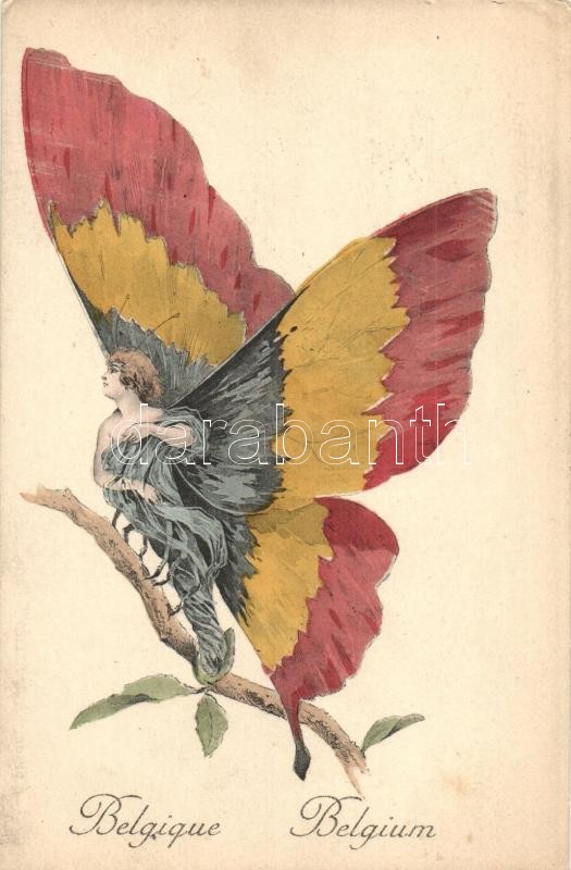 Beschreibung: Belgique / Belgian flag on the wings of a butterfly lady. Editions "Aux Allies" Paris No. 10. So. Stp (EK)