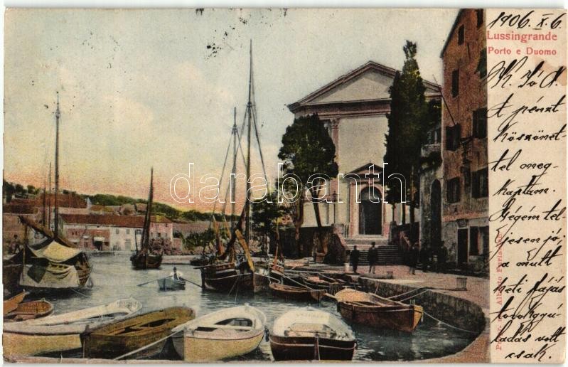 Veli Losinj, Lussingrande; Porto e Duomo / port, boats, dome https://www.darabanth.com/de/316-Fernauktion/316.0/Ansichtskarten/Kroatien~1500009/Veli-Losinj-Lussingrande-Porto-e-Duomo-port-boats-dome~II1740059