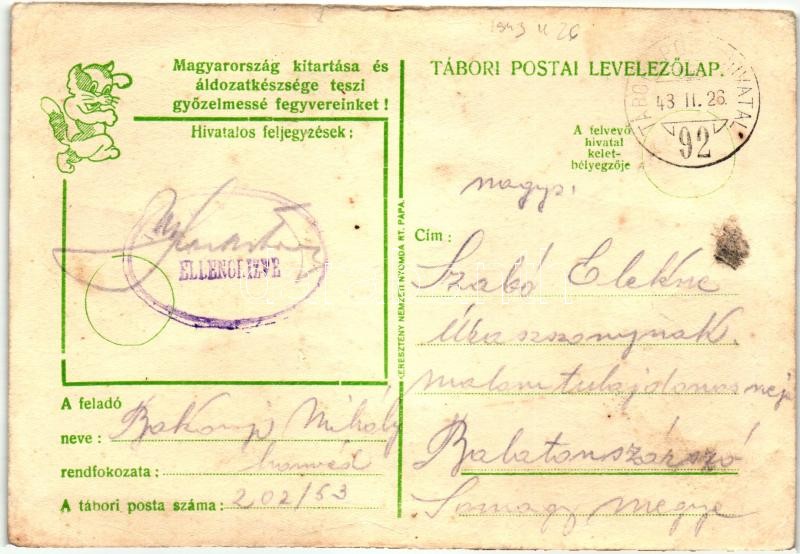 Beschreibung: 1943 Magyarország kitartása és áldozatkészsége teszi győzelmessé fegyvereinket! Tábori Postai Levelezőlap / WWII Hungarian military field post (EB)