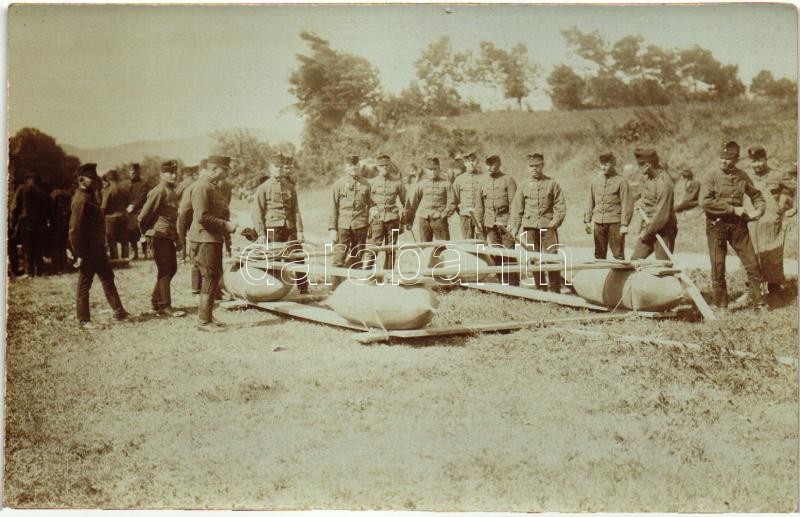 Beschreibung: Tutaj készítés folyamata, vázösszeállítás / WWI Austro-Hungarian K.u.K. soldiers making a raft, framework. photo