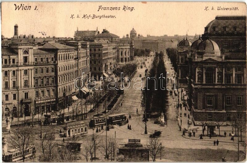 Vienna, Wien I. Franzens Ring, K.k. Hof-Burgtheater, K.k. Universität ... https://www.darabanth.com/de/316-Fernauktion/316.0/Ansichtskarten/Osterreich~1500017/Vienna-Wien-I-Franzens-Ring-Kk-Hof-Burgtheater-Kk-Universitat-street-trams-theatre-uni~II1740158
