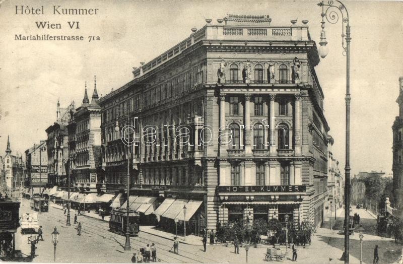 Vienna, Wien VI. Hotel Kummer. Mariahilferstrasse 71a., trams https://www.darabanth.com/de/316-Fernauktion/316.0/Ansichtskarten/Osterreich~1500017/Vienna-Wien-VI-Hotel-Kummer-Mariahilferstrasse-71a-trams~II1732981
