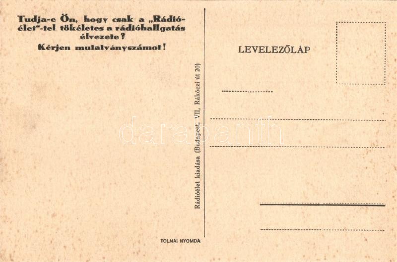 Scherz Ede, az első rádiós bemondó. Rádióélet kiadása és reklámja a há... https://www.darabanth.com/de/316-Fernauktion/316.0/Ansichtskarten/Personlichkeiten~1500059/Scherz-Ede-az-elso-radios-bemondo-Radioelet-kiadasa-es-reklamja-a-hatoldalon-First-Hu~II1732805