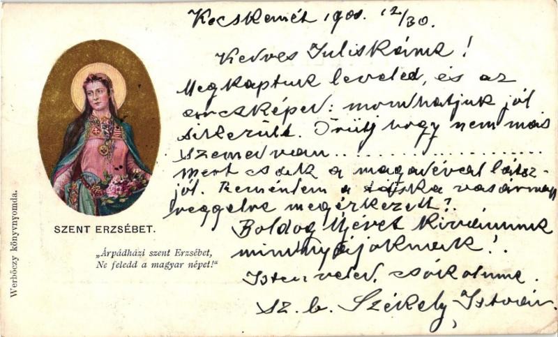 Szent Erzsébet. Werbőczy könyvnyomda kiadása / Elizabeth of Hungary https://www.darabanth.com/de/316-Fernauktion/316.0/Ansichtskarten/Religion~1500081/Szent-Erzsebet-Werboczy-konyvnyomda-kiadasa-Elizabeth-of-Hungary~II1732443