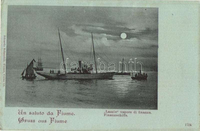 Beschreibung: Fiume, Laszlo vapore di finanza. Edoardo Schambik / Laszlo Finanzschiffe / László pénzügyőr gőzhajó Fiumében / Laszlo Austro-Hungarian financial steamship (EK)