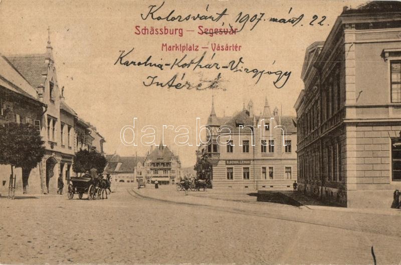 Segesvár, Schassburg, Sighisoara; Marktplatz / Vásár tér, H. Schulleru... https://www.darabanth.com/de/316-Fernauktion/316.0/Ansichtskarten/Siebenburgen~1500006/Segesvar-Schassburg-Sighisoara-Marktplatz-Vasar-ter-H-Schullerus-uzlete-market-square-~II1737452