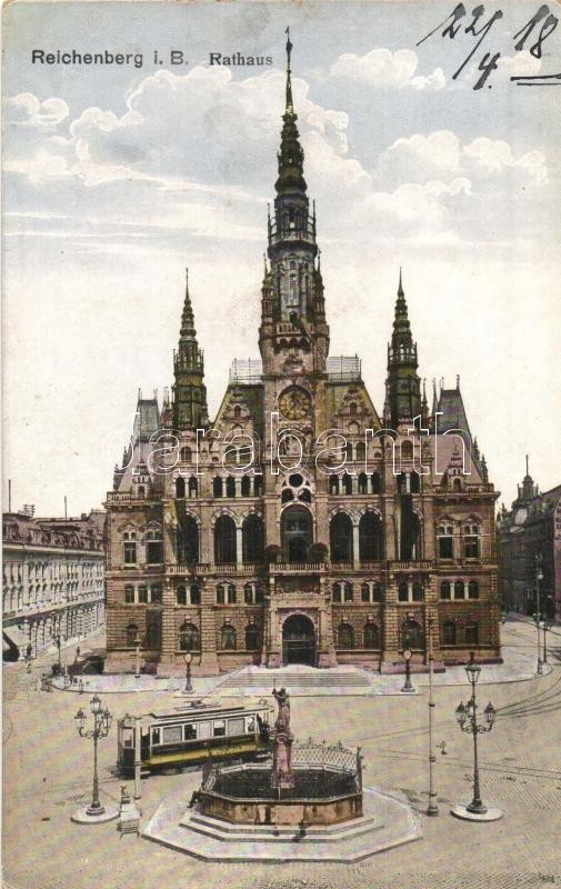 Liberec, Reichenberg i. Böhmen; Rathaus / town hall, tram https://www.darabanth.com/de/316-Fernauktion/316.0/Ansichtskarten/Tschechische-Republik~1500021/Liberec-Reichenberg-i-Bohmen-Rathaus-town-hall-tram~II1732875