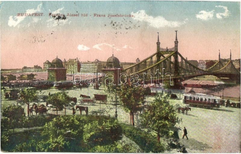 Budapest, Ferenc József híd, villamosok, rakpart (EK) https://www.darabanth.com/de/316-Fernauktion/316.0/Ansichtskarten/Ungarn~1500005/Budapest-Ferenc-Jozsef-hid-villamosok-rakpart-EK~II1733933