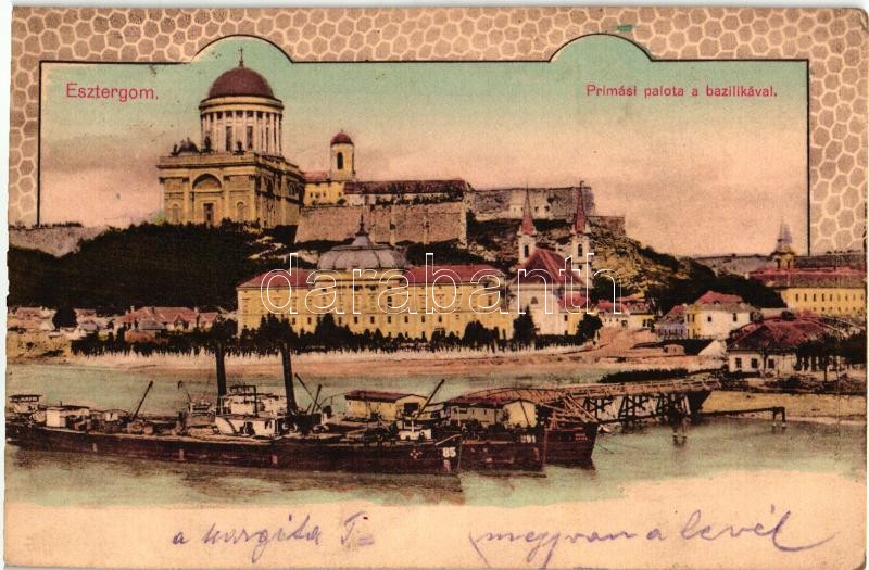 Esztergom, Prímási palota, Bazilika, uszály, gőzhajó https://www.darabanth.com/de/316-Fernauktion/316.0/Ansichtskarten/Ungarn~1500005/Esztergom-Primasi-palota-Bazilika-uszaly-gozhajo~II1740252
