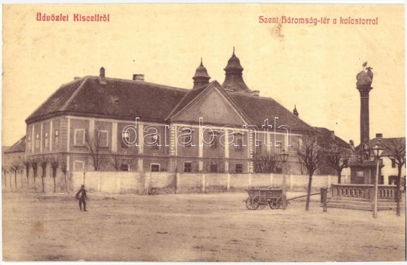 Beschreibung: Kiscell, Celldömölk; Szentháromság tér és szobor, Kolostor. W. L. 453. (vágott / cut)